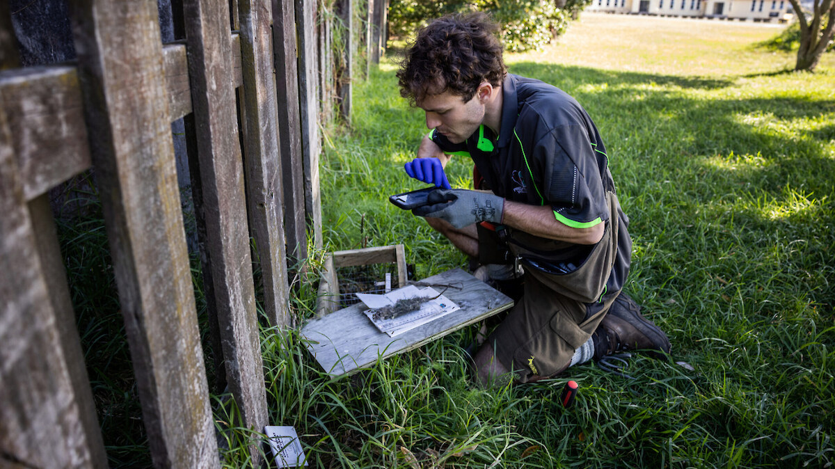 Predator Free Wellington field officer recording results on his phone. Image credit: Jim Huyleborek